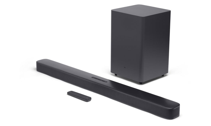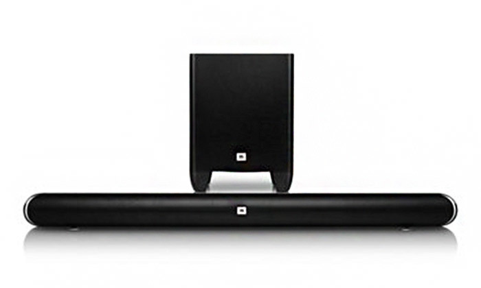 מקרן קול איכותי מבית JBL המתחבר בקלות לטלוויזיה, לסמארטפון, לטאבלט או לקונסולת משחקים בעזרת קישוריות Bluetooth, כולל סאבוופר אלחוטי ושלט רחוק.