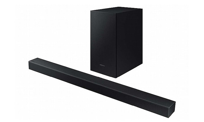 מקרן קול אלחוטי ואיכותי מבית Samsung בעל 2.1 ערוצים עם Bluetooth ותמיכה בסראונד וירטואלי, כולל סאבוופר אלחוטי.